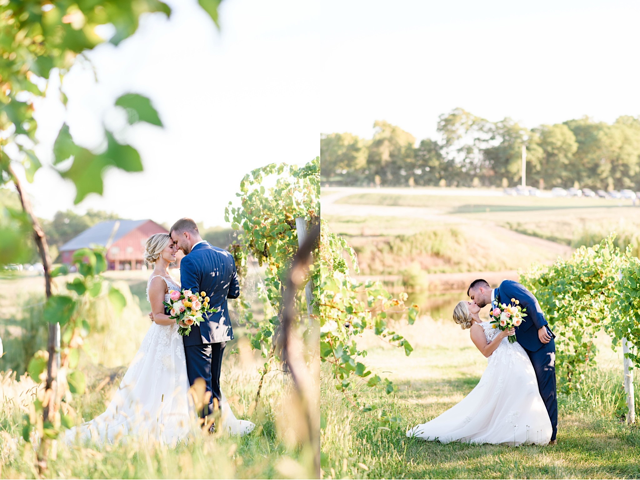 Sunset photos of bride and groom at Carper Winery & Vineyard in Iowa